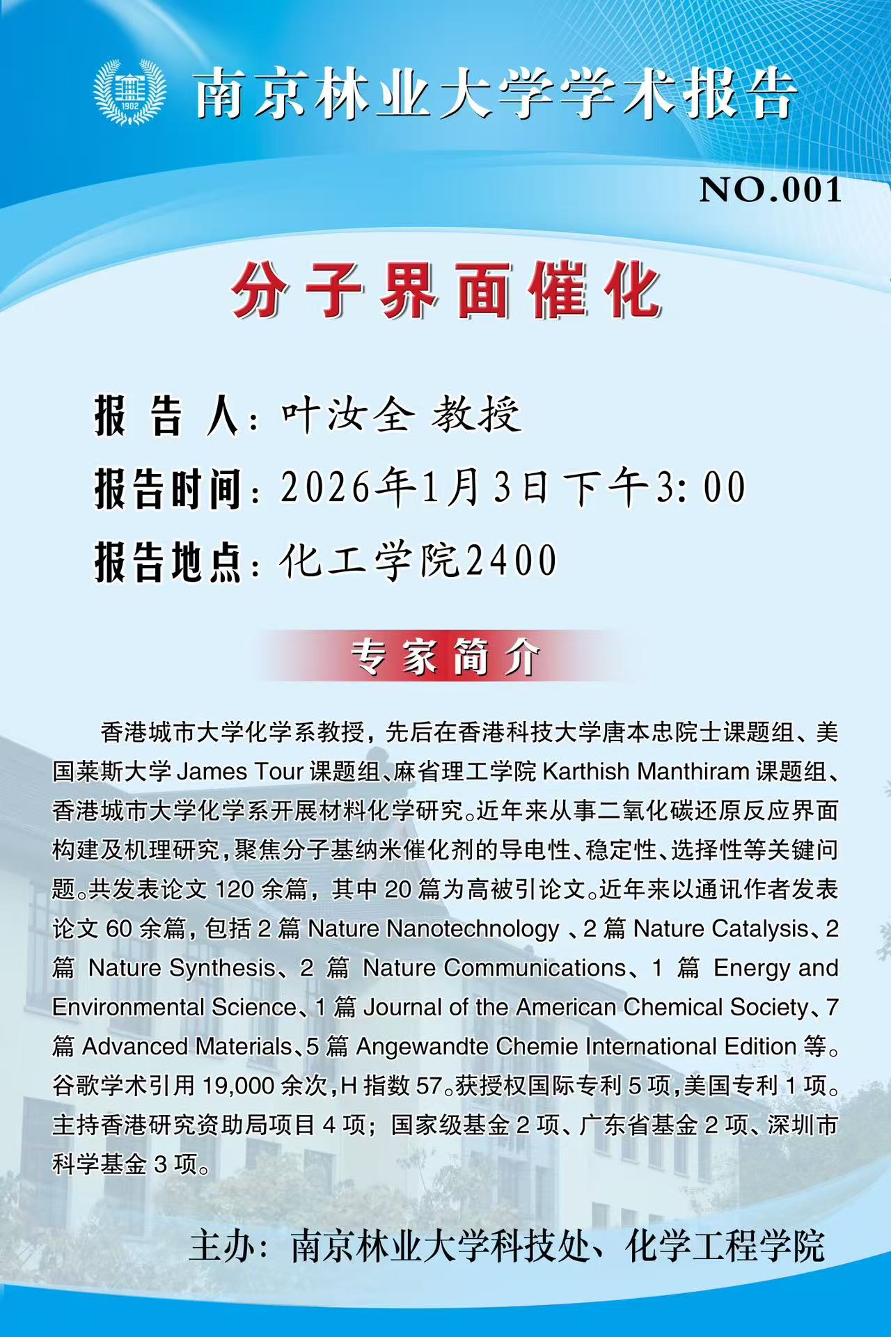 【报告地点】化工院2400